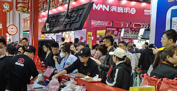 充滿鍋氣的鐵板漢堡制作過程,吸引了眾多參展觀眾的駐足。無論是面包胚的口感,還是牛肉餅的質量與口味都獲得了一致的好評。顏值超高、口味超棒、多種搭配、健康不貴的福咔恰漢堡深受眾多參展觀眾的喜愛,場館內人手一個的福咔恰漢堡就是參展觀眾對于品牌最高的肯定。